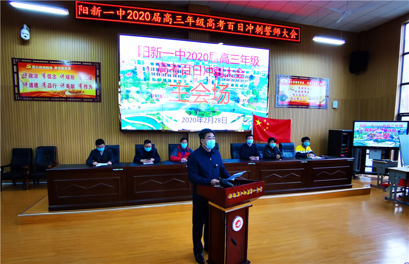 同学们,花开花落,云卷云舒,三年高中生活,悄无声息地就走到了最后的100天。虽然时间紧迫,但事在人为,震惊世界的“火神山、雷神山”医院建成只用了10天,这是国家非常时期创造的奇迹!我们距离高考还有100天,只要同学们做到“葆有静气,紧盯目标,紧跟步伐,行为自律,学习自主,健康自护,情绪自制,方法自悟”。红色阳新,百年一中,师生同心,家校一心,其利断金,我坚信,同学们一定可以在六月的战场上创造出属于自己的人生奇迹!