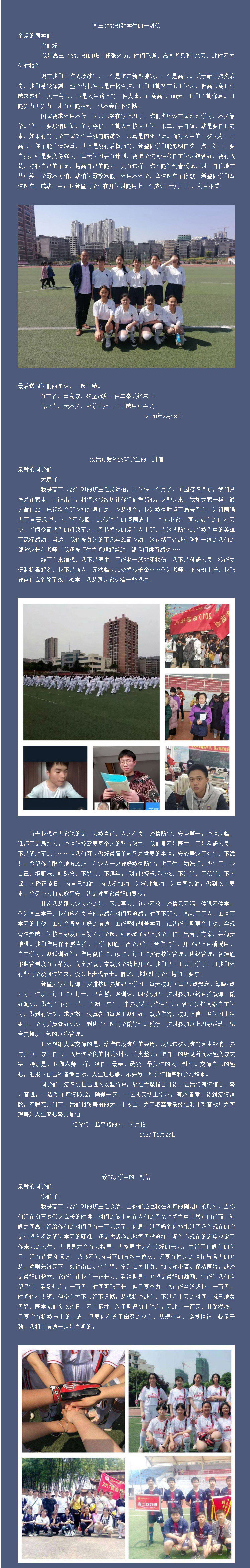 同屏守望相助,温情照亮你我——阳新一中高三3部各班致同学们的一封信