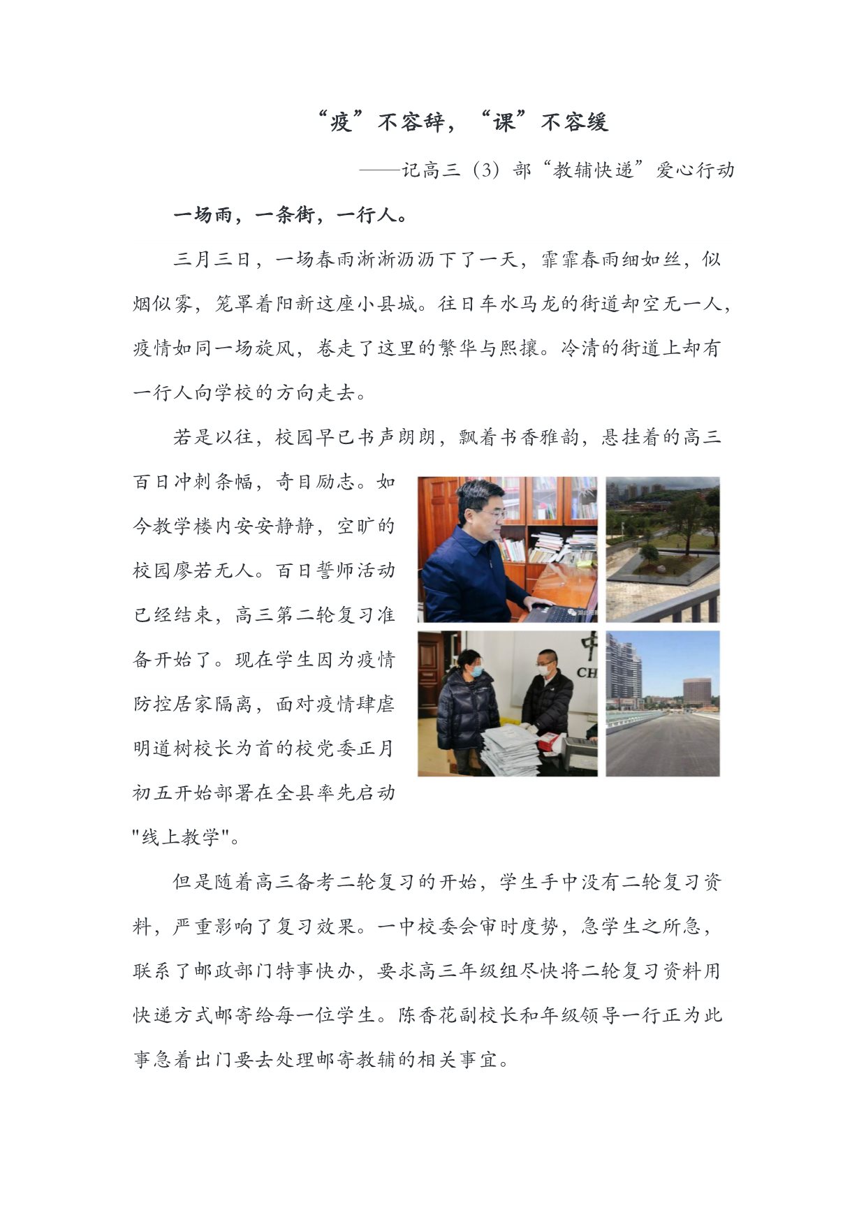 “疫”不容辞,“课”不容缓——记高三(3)部“教辅快递”爱心行动