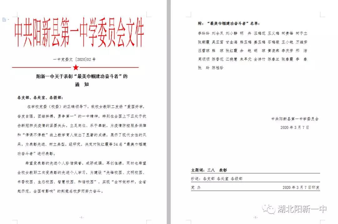 《巾帼不让须眉,共谱育人新篇————在阳新一中纪念"三八"国际妇女节暨"线上教学最美巾帼奋斗者"表彰视频会上的致辞》
