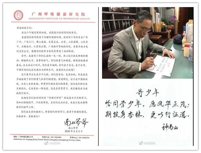 看了钟南山爷爷的回信和寄语,