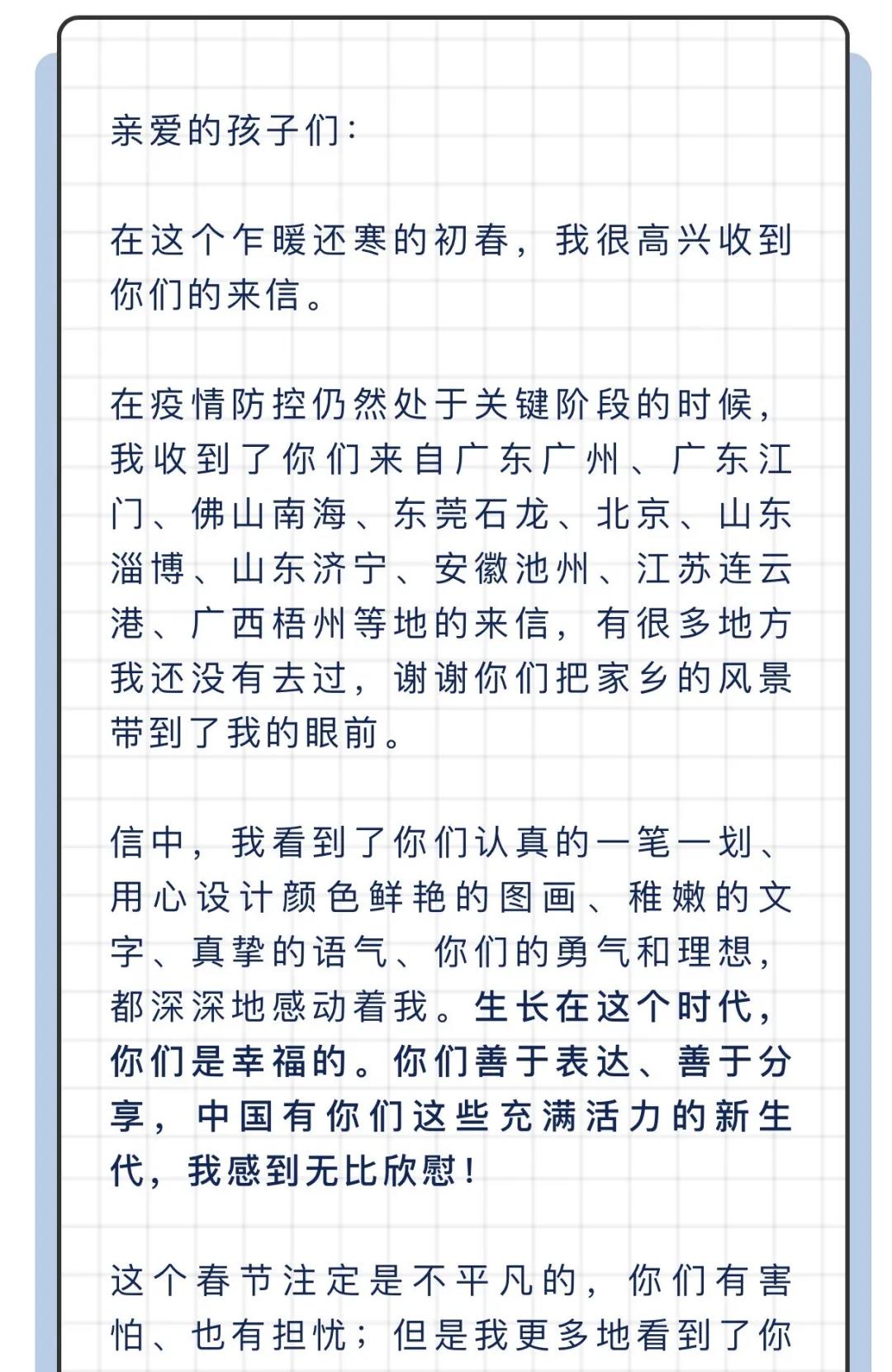 这段时间,钟南山院士收到了来自全国各地中小学生的信。