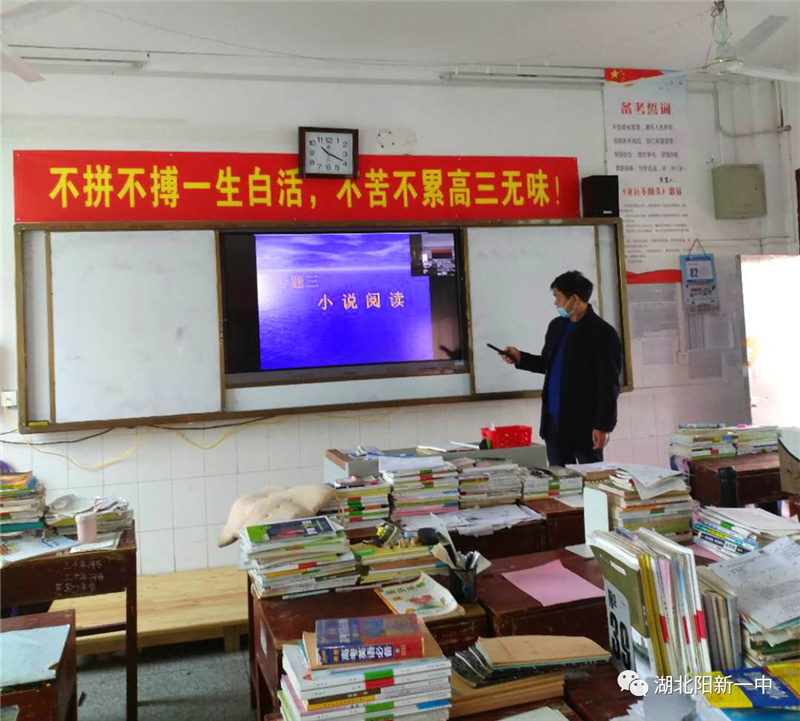 榜样的力量是无穷的,看了吴远柏主任的示范后,高三政治老师余斌也在教室上了直播课,效果很好,其他老师也纷纷响应。