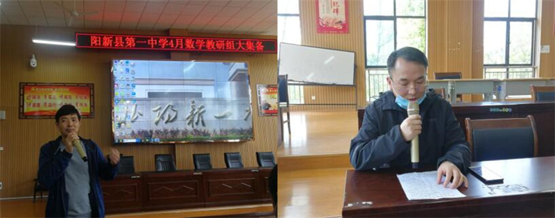 4月24日上午,阳新一中数学组全体老师在新校区明道楼报告厅开展研讨活动。活动由新校区数学教研组长汪梅花主持,学校党委副书记潘龙星全程参与活动并作总结讲话。本次活动包括“说课”、“评课”、“高三第二轮复习备考情况通报”、“提复习建议”、“领导讲话”五个环节,活动持续近两个小时。