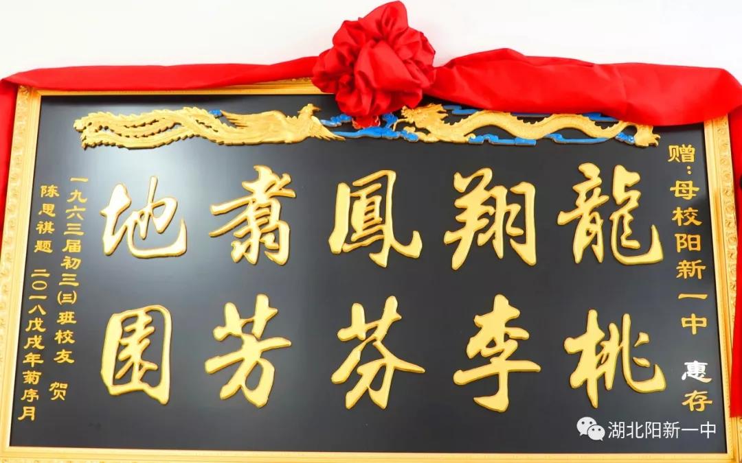 阳新一中的老校友,跨越55年的时空,于今年10月11日重回母校聚首,凝聚着对母校的深情厚意,在看到母校辉煌壮观,业绩丰宏后,老校友们感慨万分、激动不已。他们选择用赠送牌匾的方式表达他们对母校培育之恩的感激,同时希望母校同心协力,为民育人,立德树人,为国培才,培育无数英才光史册,书写阳新教育更加灿烂辉煌的明天!