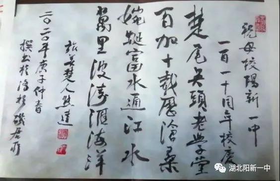 年逾九旬,闻母校阳新一中建校110周年,欣然命笔赋诗一首“楚尾吴头老学堂,百加十载历沧桑。婉(蜿)蜒富水通江水,万里波涛汇海洋。”书之于幅精美装裱,不远万里邮寄而来。深情厚谊,赤子情怀,令人感佩。