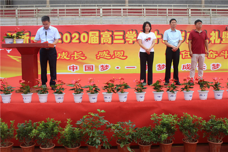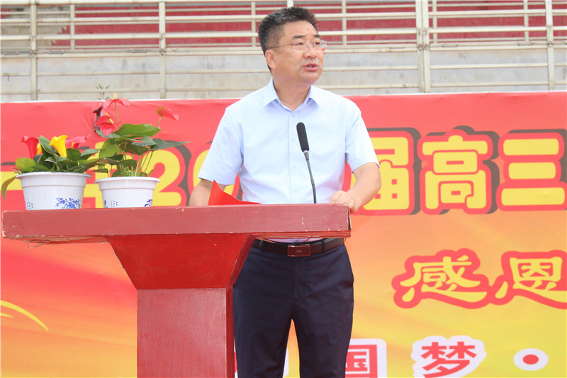 党委书记、校长明道树作题为“生于新时代,当做追梦人”的讲话。明校长祝贺广大学子成人成才,对同学们高中三年取得的成绩表示由衷赞赏,对老师们的辛勤付出表示高度赞扬,对学生家长的悉心呵护表示崇高敬意。勉励同学们要永葆爱国心,要有平常心和追梦心,心怀天下,有为担当,一路高歌,做好追梦人,忠于祖国,热爱社会,奉献人类。