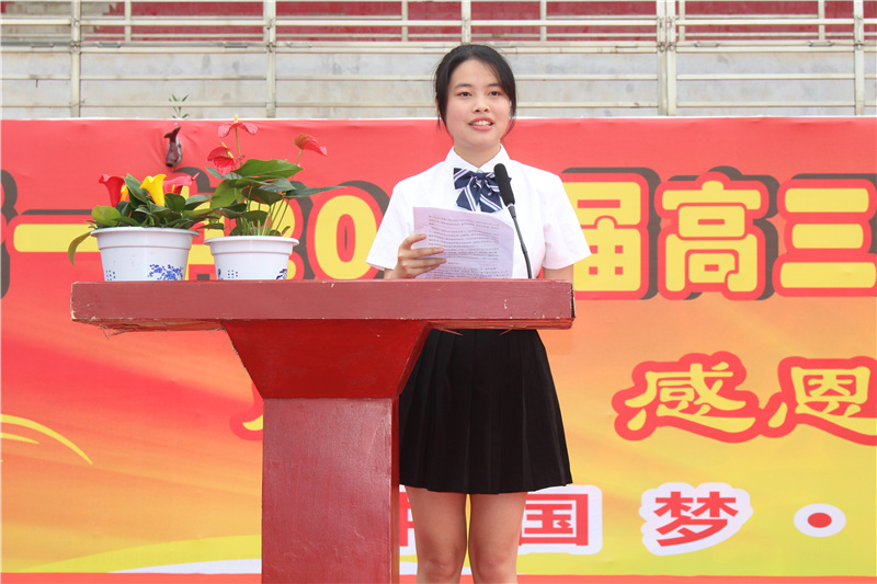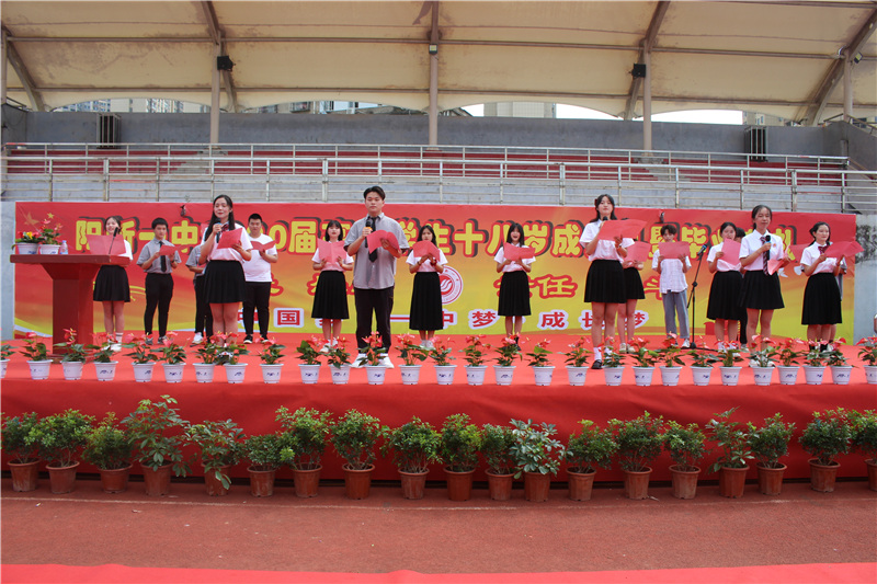 学生代表高三(27)班尹梦婷上台发言。她热情洋溢,语言铿锵,回顾了个人成长足迹,展望了美好的未来,表达了同学们成人后的自豪感和担当情怀。