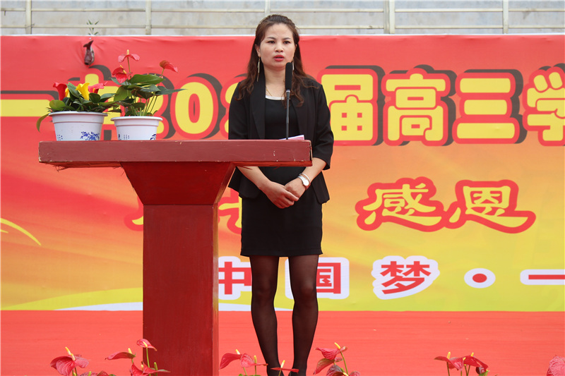 家长代表高三(29)班杨佳辉的妈妈上台发言。她神情饱满,语重心长,对老师们的辛勤教育表示由衷感谢,对同学们成人后寄予了殷切的期望。
