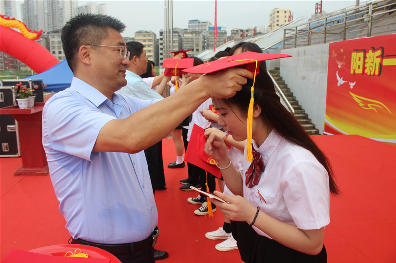 艳阳高照,青春如歌。2020年6月26日上午,阳新一中(老校区)举行2020届成人礼暨毕业典礼。这次活动的主题是“成长、感恩、责任”。阳新一中党委书记、校长明道树出席活动并讲话。党委委员、副校长方长风和党委委员、副校长李尚才参加了活动。阳新一中(老校区)高三年级11个班的全体师生和部分学生家长共1000余人参加了盛会。活动由党委委员、副校长陈香花主持。