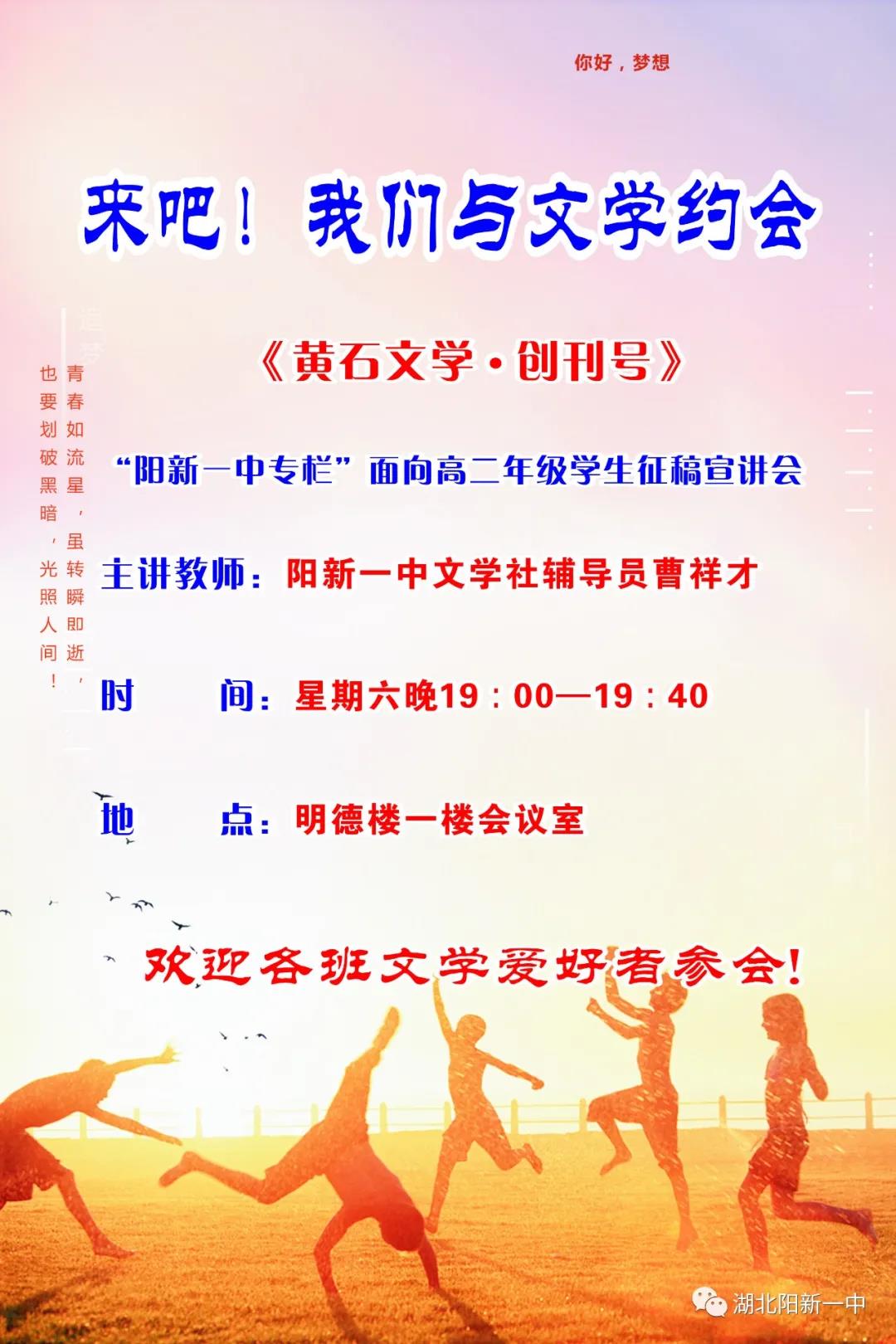 青春如流星,虽转瞬即逝,也要划破黑暗,光照人间。你好,梦想!阳新一中文学社,今天,在这里,又一次出发了,开启新的征程,攀登新的高峰,为“文化一中”建设作出新的贡献!