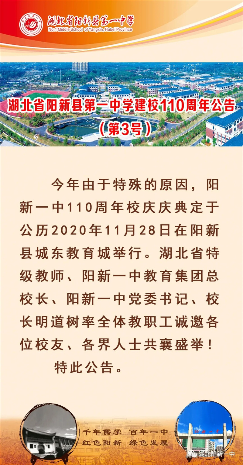 湖北省阳新县第一中学建校110周年公告(第3号)