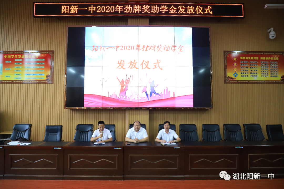 9月16日上午,阳新一中2020年劲牌奖助学金发放仪式在明德楼学术报告厅举行,我校今年毕业的109名即将踏入大学校园的优秀困难学子每人获得2000-5000元资助。劲牌慈善公益基金会秘书长刘赞先生、副校长梁师稳出席发放仪式并为奖助学金获得者颁发奖助学金。活动由资助办主任龚晓佑主持。