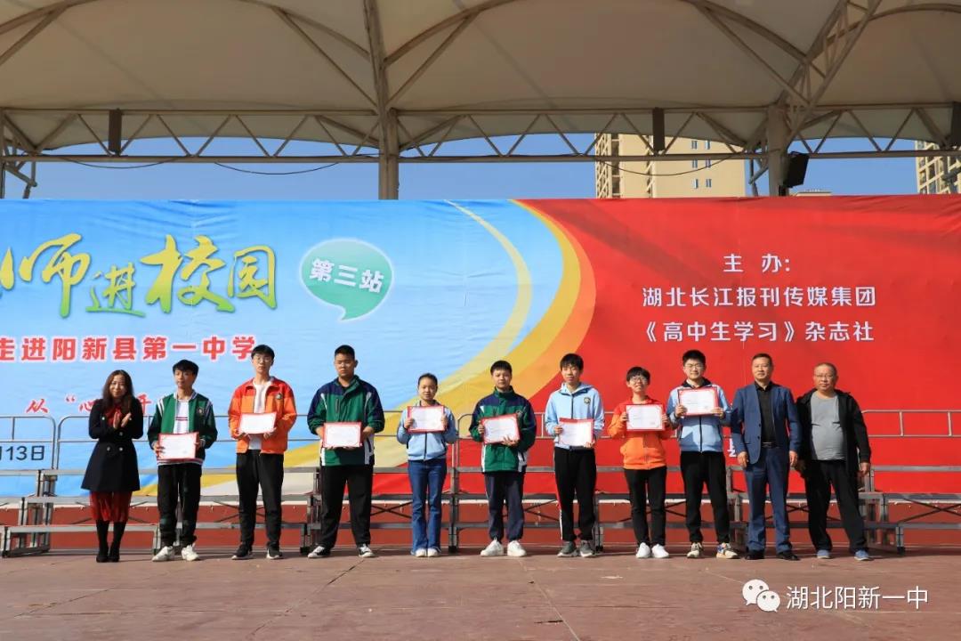 湖北长江报刊传媒集团党委副书记、总经理周发秋为明道树校长颁发《高中生学习》专家编委聘书,为阳新一中颁发“我的抗疫故事”征文比赛优秀组织奖。湖北长江报刊传媒集团副总经理袁遵敬为阳新一中颁发《高中生学习》通讯站铜牌,为阳新一中刘杰老师颁发《高中生学习》通讯站站长聘书。