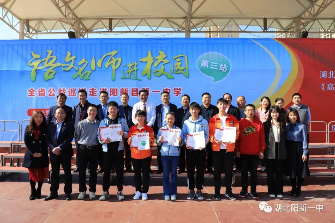 金菊吐艳,枫叶流丹。11月13日上午,湖北长江报刊传媒集团《高中生学习》杂志主办的“语文名师进校园”全省公益巡讲活动走进阳新一中。活动特邀湖北省荆门市龙泉中学语文特级教师邓济舟主讲。湖北长江报刊传媒集团党委副书记、总经理周发秋,湖北长江报刊传媒集团党委委员、副总经理袁遵敬,黄石市教科院高中语文教研员陈建,阳新社科联主席梁勇,阳新一中党委书记、校长明道树,副校长柯美宝、徐宏斌,阳新一中纪检书记李雁鸣出席活动,阳新一中全体语文教师及高一、高三全体学生和富川中学部分学生近3000余人参与活动。活动由阳新一中副校长徐宏斌主持。