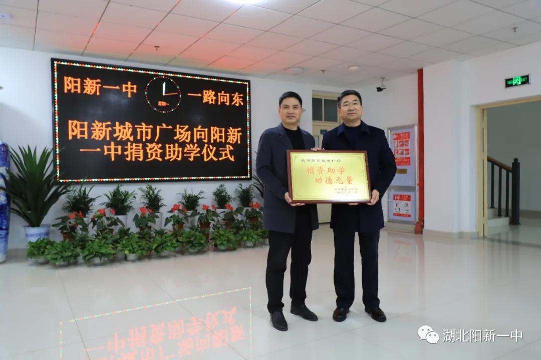 鹏之千里,借风之力,更上云霄;一中未来,得众之助,前行不止。23日上午,阳新城市广场董事长翁才标、总经理王红双、副总经理翁名安等来我校爱心捐赠10万元。阳新一中党委书记、校长明道树代表学校接受捐赠并颁发了捐赠证书。