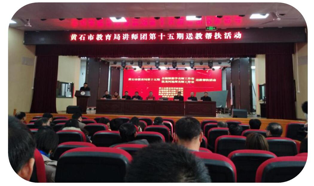 2019年12月12日,阳新高中的校园阳光灿烂,洁净优美,惠风和畅,温暖如春。为贯彻落实市教育局总体部署(黄教师管【2019】5号文),“焦龙河地理名师工作室”与“余锦银名师工作室”携手走进阳新县高级中学,进行送教帮扶活动,来自黄石市各县市区的高中地理教师50余人出席了活动。本次活动得到黄石市教科院、阳新县教科院的精心组织和安排,受到阳新县高级中学的高度重视和大力支持。