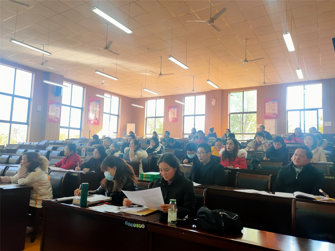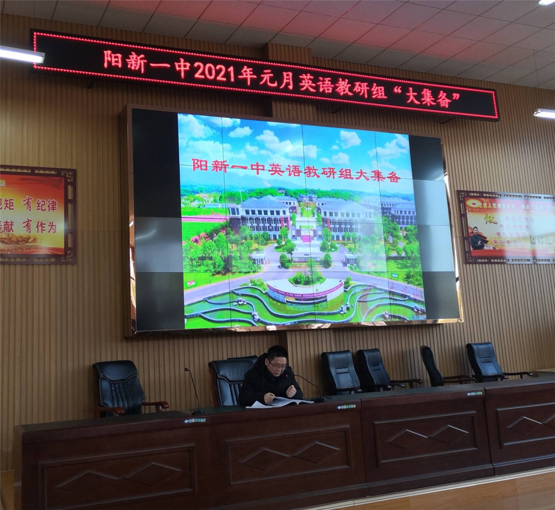 1月14日下午,阳新一中英语教研组在明道楼报告厅开展“大集备”活动。阳新一中英语组蹲点校领导柯美宝副校长和全体英语教师参加此次活动,活动由英语教研组长余艳主持。