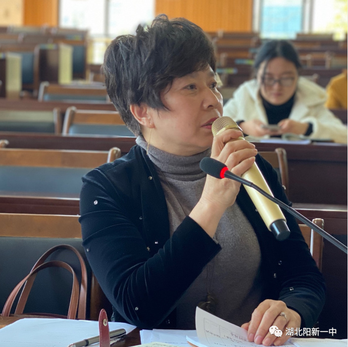 在提复习建议环节,阳新一中备课组长赵焕利和王小艳老师分别就二轮复习备考交流经验。赵焕利老师从增强高分意识,明确高分目标,研究高分方法等方面建言献策。王小艳老师提出抓实新高考背景下二轮备考复习的重难点:词汇(新增词汇和专题词汇)、阅读(主题语境和语篇理解)、写作(核心素养和思维发展)。