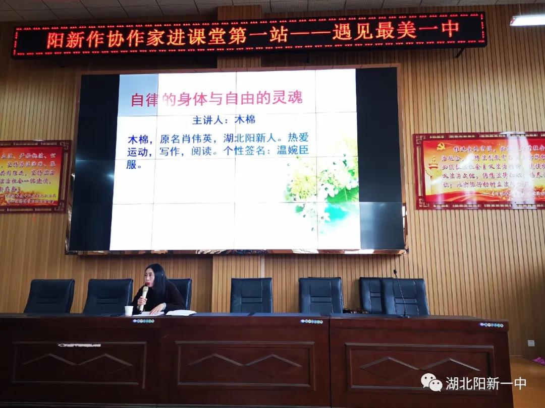 在最美的四月天,我们与文学相约,我们相聚在阳新一中明礼楼法制讲堂。16日,阳新作协会员大明、高山、美丽的忧伤分别携《习惯的养成就是重复和坚持》《我与文学》《与梦随行》走进一中文学创作指导课课堂,与1300多名学子分享人生智慧,交流写作心得。文友清欢斋.梅影、金石、江南、杨雪同行前来观摩学习,以壮声威。这是继3月12日、3月19日阳新作协会员江南、木棉组团在一中授课之后,来到一中文学创作指导课课堂的第二个阳新作协授课团队。一中教师余秋桦、曹祥才全程陪同,并负责课程的组织、实施。