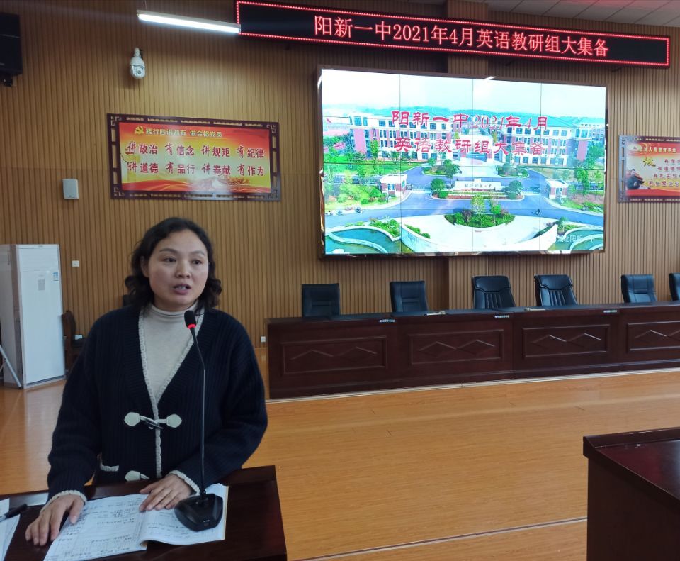 3月27日下午2点,阳新一中2021年4月英语教研组大集备活动在明道楼报告厅召开。阳新一中蹲点副校长柯美宝,阳新一中全体英语教师参加此次活动,阳新一中英语教研组长余艳主持。