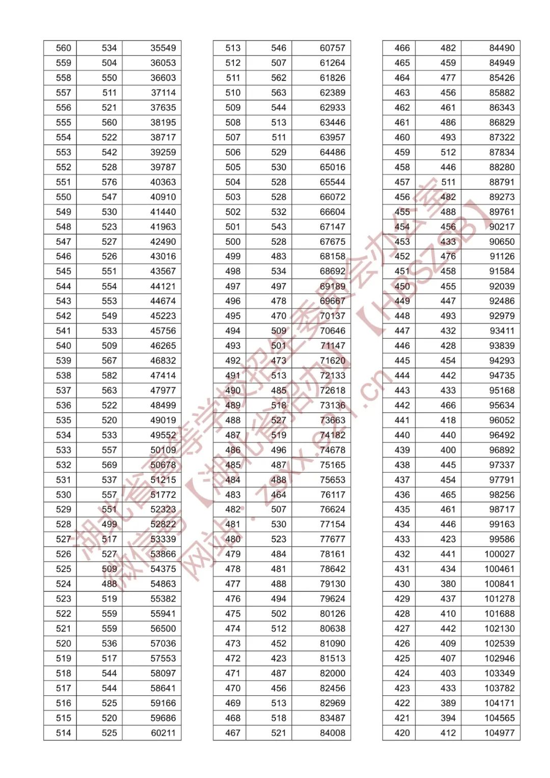 湖北省2021年普通高校招生排序成绩一分一段统计表(首选历史)