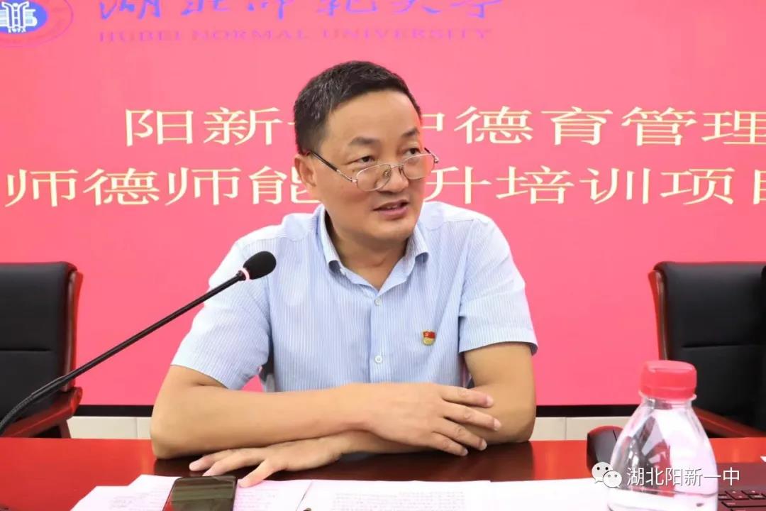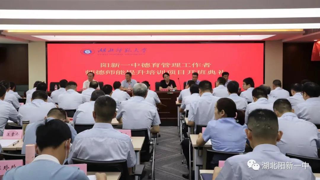 “骄阳似火,暑气未消。”刚刚结束学期工作,暑期教师培训又如火如荼展开。7月30日,阳新一中“德育管理工作者师德师能提升培训”在湖北师范大学正式开班。参加开办仪式的有湖北师范大学党委常委、副校长雷儒金,湖北师范大学教师教育学院院长陈强教授,徐小林副教授,阳新一中党委书记、校长明道树,阳新一中全体中层以上干部,班主任及政治教师90余人。开班仪式由湖北师范大学教师教育学院院长陈强主持。