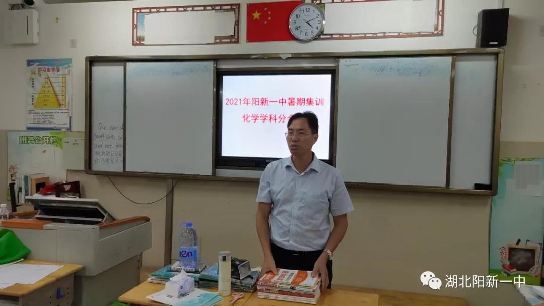 8月25日下午,阳新一中化学组全体老师在明德楼105室举行暑假集训研讨,学校副校长梁师稳全程参与活动作总结讲话。活动由阳新一中化学教研组长曹阳老师主持。