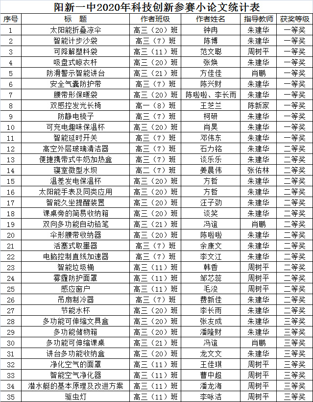 学生经过30多天的酝酿创作,共提交科技小论文45篇。经学校评审小组评审,产生科技小论文一等奖11篇,二等奖16篇,三等奖8篇。