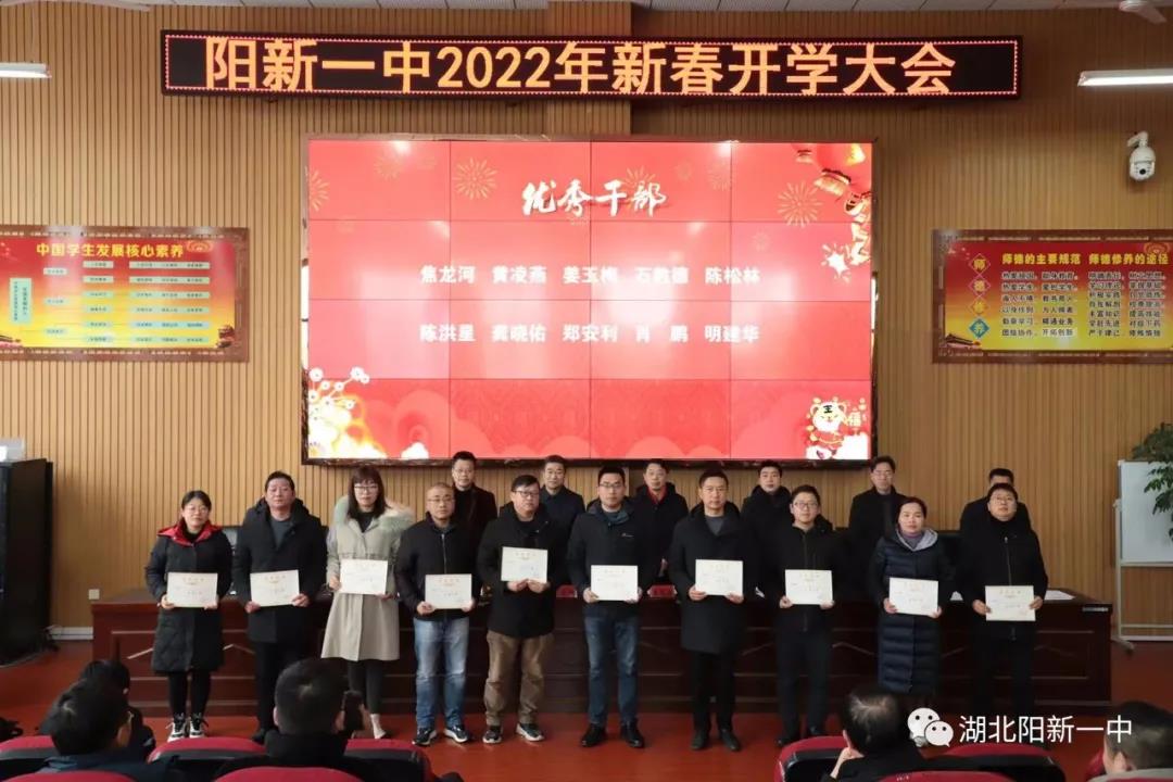 为表彰过去一年教育教学工作中表现突出的先进个人和争先创优的团队,激励全体一中更加凝心聚力,奋发有为。会上,校党委副书记潘龙星宣读了《阳新一中关于表彰2021年优秀团队及先进个人的通知》,100位“优秀干部”、“优秀班主任”、“四有好教师”、“优秀员工”等先进个人及8个先进团队受到表彰。