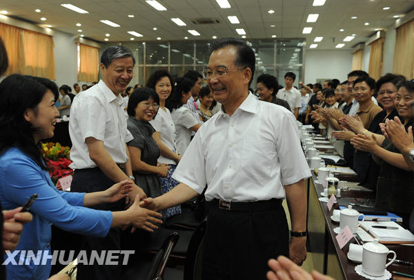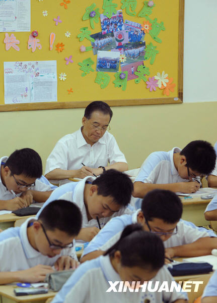 第四,教育要符合以人为本的要求。学校要坚持“以人为本”的办学理念,以“依靠人、为了人、服务人”为基本出发点,尊重学生、关爱学生、服务学生,发现和培养学生的兴趣和特长,塑造学生大爱、和谐的心灵。前两年我到医院看望季羡林先生,他对我说,讲和谐还要讲人的自我和谐,要使人对自己的认识符合客观实际,适应社会的要求,正确对待金钱名利,正确对待进退、正确对待荣辱,这才能和谐起来。最后我想对老师提点要求。教师的日常工作既平凡又不平凡,教师不是雕塑家,却塑造着世界上最珍贵的艺术品。广大教师应当成为善良的使者,挚爱的化身,做品格优秀、业务精良、职业道德高尚的教育工作者。 一要充满爱心,忠诚事业。“没有爱心就没有教育”,这是实验二小霍懋征老师的话。她念念不忘的就是希望拍一部反映老师教书育人的爱心和奉献精神的电影或电视剧。我在这里也大声呼吁,希望能有更多描写老师的影视作品。当一名教师,首先要是一个充满爱心的人,把追求理想、塑造心灵、传承知识当成人生的最大追求。要关爱每一名学生,关心每一名学生的成长进步,努力成为学生的良师益友,成为学生健康成长的指导者和引路人。 二要努力钻研、学为人师。当今时代知识更新换代的周期越来越短,每个人都需要不断学习才能适应工作要求。教师是知识的传播者和创造者,更要不断地用新的知识充实自己。要想给学生一杯水,自己必须先有一桶水。教师只有学而不厌,才能做到诲人不倦。广大教师要崇尚科学精神,严谨笃学,做热爱学习、善于学习和重视学习的楷模。要如饥似渴地学习新知识、新科学、新技能,不断提高教学质量和教书育人的本领。要积极投身教学改革,把最先进的方法、最现代的理念、最宝贵的知识传授给学生。刚才座谈时有的老师提到要给教师创造培训的条件,我完全赞成。要建立包括脱岗轮训、带薪培训的制度,当然要讲求实效,把好事真正办好。 三要以身作则,行为世范。教育是心灵与心灵的沟通,灵魂与灵魂的交融,人格与人格的对话。不久前有一个学生给我写了一封信,他提到:现在青年学生自杀的很多,小小年纪厌世甚至走上绝路,总理能否在9月1日开学时专门和学生在网上对话,告诉学生要珍惜生命,热爱生活。他所说的事虽然是极个别,但必须引起重视。教师个人的范例对于学生心灵的健康和成长是任何东西都不可能代替的最灿烂的阳光。好的老师是孩子最信任的人,有些话甚至不对父母讲也愿意跟老师讲,老师能帮助他解决思想问题包括实际问题,做到这一点不容易,没有爱心是不可能的。惟有教师人格的高尚,才可能有学生心灵的纯洁。教书者必先强己,育人者必先律己。我们不仅要注重教书,更要注重育人;不仅要注重言传,更要注重身教。广大教师要自觉加强师德修养,坚持以德立身、自尊自律,以自己高尚的情操和良好的思想道德风范教育和感染学生,以自身的人格魅力和卓有成效的工作赢得社会的尊重。 全社会要弘扬尊师重教的良好风尚。一个国家有没有前途,很大程度上取决于这个国家重视不重视教育;一个国家重视不重视教育,首先要看教师的社会地位。要注意提高教师特别是中小学教师的待遇。从今年起,在国家财政比较困难的情况下,按教师平均工资水平不低于当地公务员平均工资水平的原则,实行义务教育阶段教师绩效工资制度。中央财政今年已准备120亿元,全国计算大概是370亿元。这不是简单的涨工资,应该把薪酬待遇和个人工作成效密切挂钩。这是对教师辛勤劳动的尊重。我们要继续发扬中华民族尊师重教的优良传统,不断提高教师的政治地位、社会地位和生活待遇,把广大教师的积极性、主动性、创造性更好地发挥出来。各级政府都要满腔热忱地支持和关心教育工作,积极改善教师的工作和生活条件,吸引和鼓励高素质人才从事教育事业,尤其是到基层、农村和边疆地区任教。中小学教师非常重要,有些国家让最优秀的人教小学。要像尊重大学教授一样尊重中小学教师。要大力宣传教育战线的先进事迹,特别是终身从事中小学教育事业的典型,营造良好的舆论氛围,让尊师重教蔚然成风,让教师成为全社会最受人尊敬、最值得羡慕的职业。 (今年教师节前夕,温家宝总理到北京市第三十五中学看望师生。上午听了5节课,下午同北京市部分中小学教师座谈。本文是他对听课的点评和在听了教师代表发言后的讲话。)