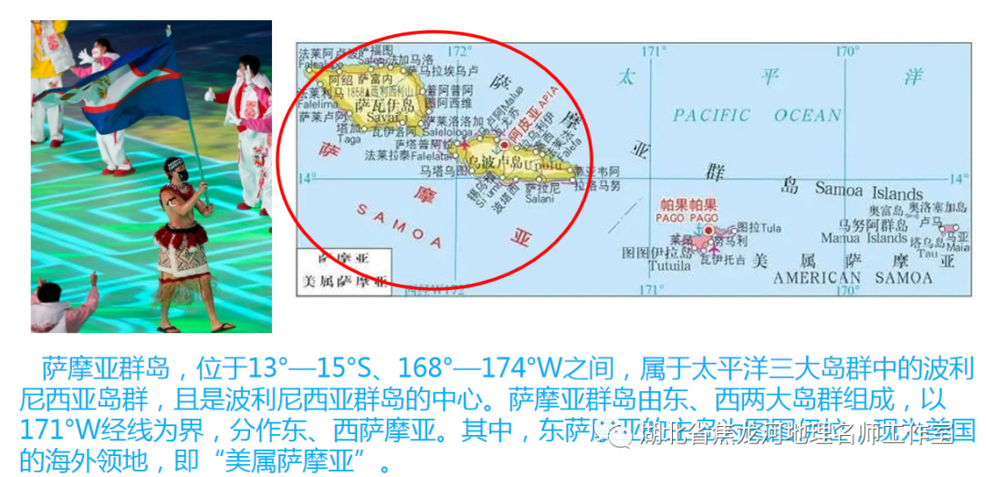 课堂导入——围绕热点事件冬奥会,引出萨摩亚,选题新颖,问题导入,令人耳目一新,充分调动学生的学习兴趣。