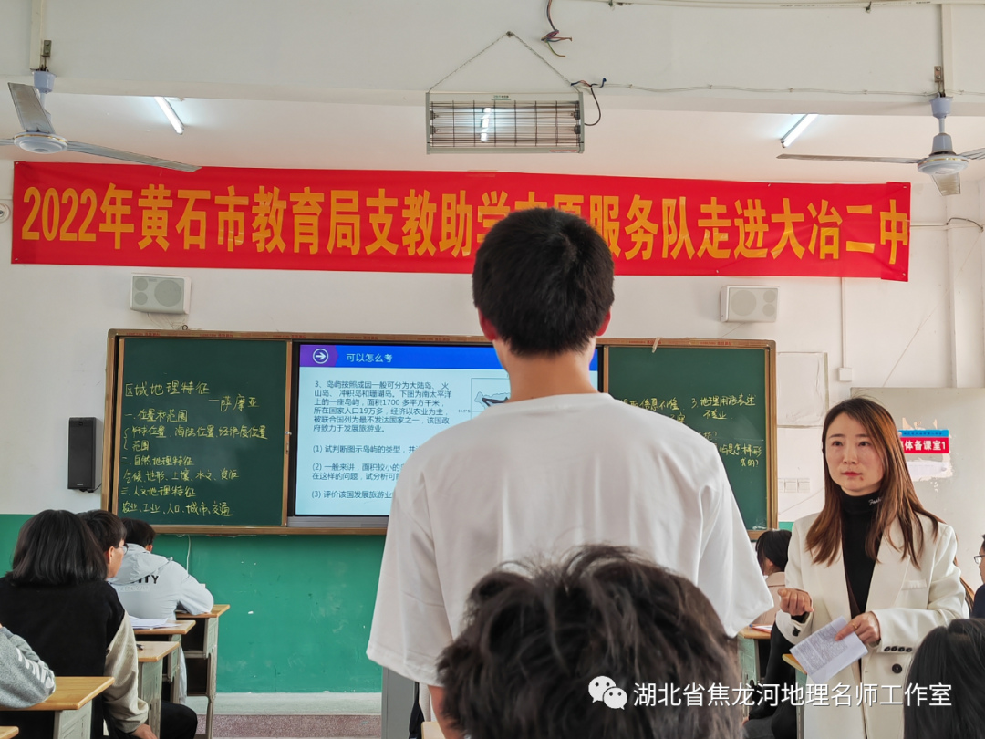 黄石市支学助学志愿者服务队,走进课堂为学生地理学习答疑解惑,鼓励大冶二中学子要不忘初心,不惧挑战,抓住有限的时间,决胜高考,学生斗志昂扬,信心满满。