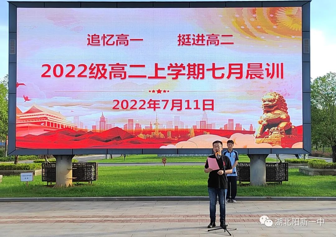 长风破浪会有时,直挂云帆济沧海。7月11日早上7:00,高一年级在至美楼广场举行了主题为“追忆高一,挺进高二”的国旗下讲话,本次国旗下讲话由高一(1)班负责,刘杰主任作主题演讲。年级管理团队和班主任团队全程参与。