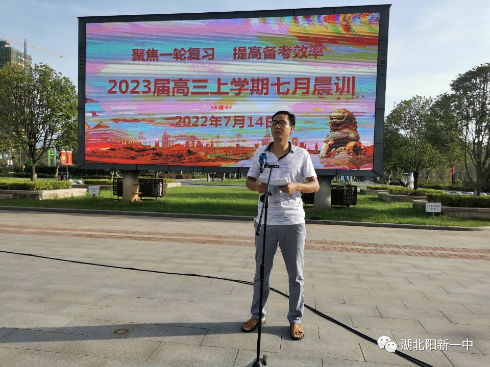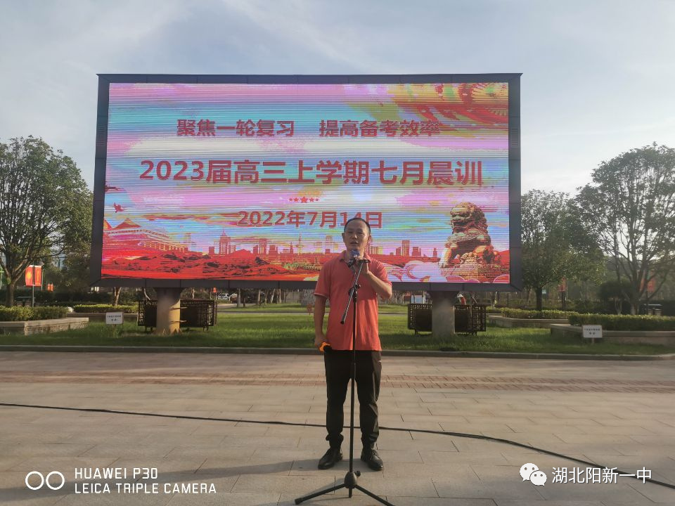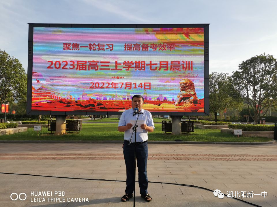 夏日炎炎,备考热情不减,为进一步做好一轮复习,提升备考效率,提高学生高考复习的质量,7月14日早晨6:30高三年级在学校至美楼广场召开了主题为“聚焦一轮复习,提升备考效率”的晨训活动。高三年级1300多名师生参加了活动,活动由年级主任程志勇主持,学校党委委员、副校长江章令出席活动。