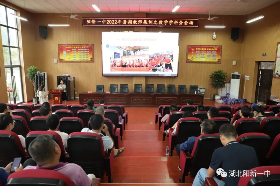 8月30日下午,阳新一中2022年暑期教师集训之数学学科研讨会在阳新一中明德楼学术报告厅举行。数学学科蹲点领导潘龙星副书记及学校全体数学教师参加活动,活动由数学教研组长汪梅花老师主持。
