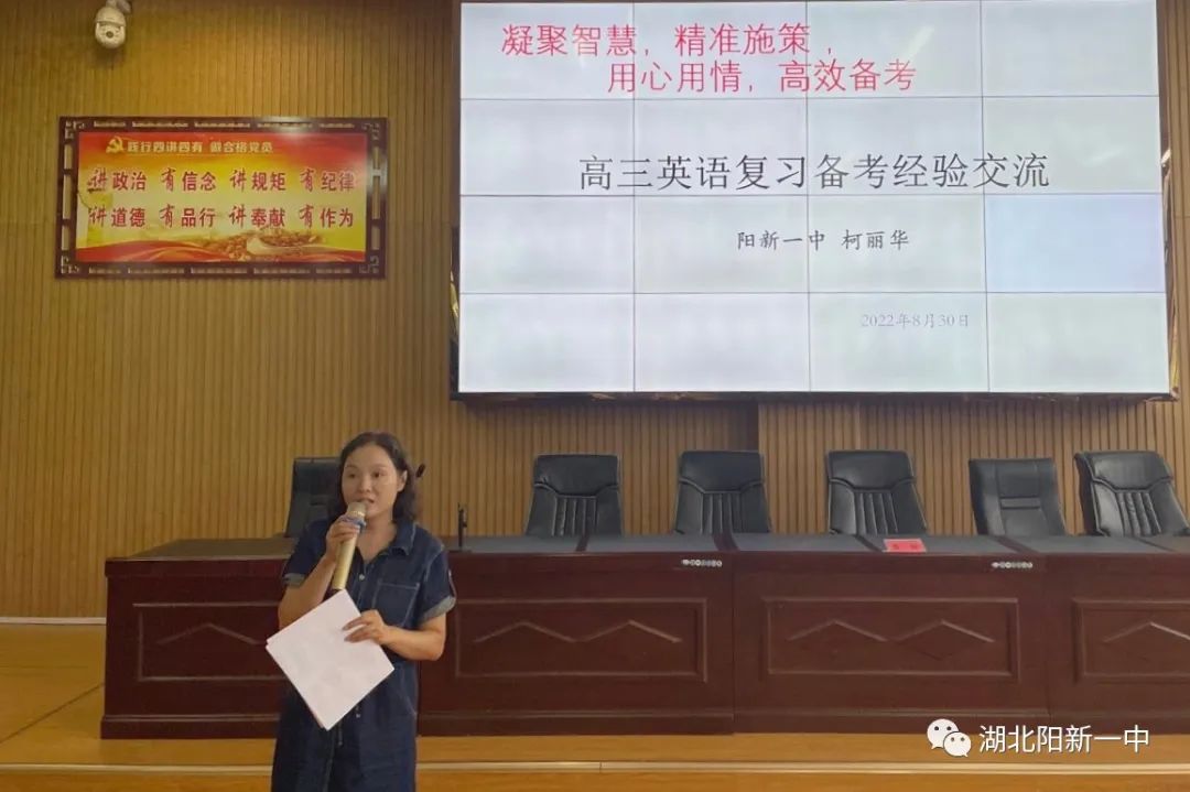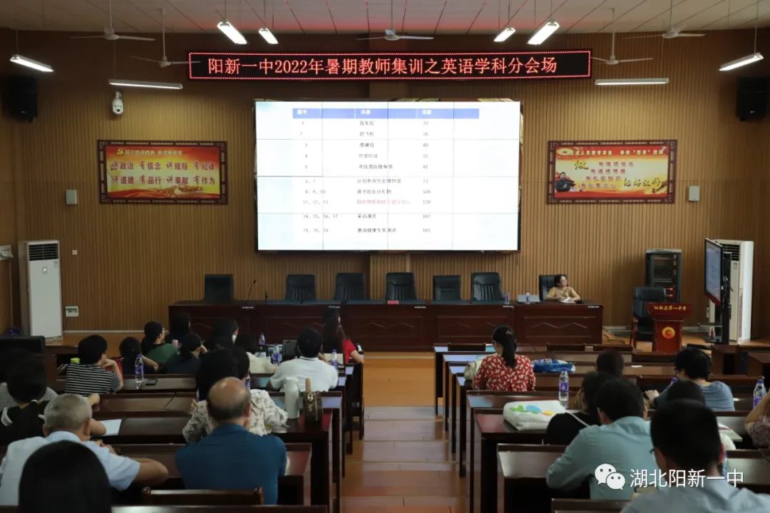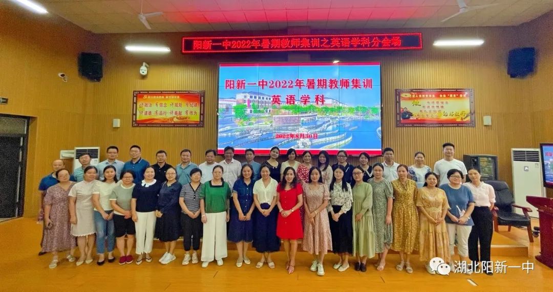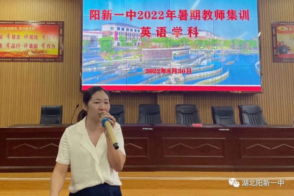 8月30日下午,阳新一中2022年暑期教师集训之英语学科研讨会在阳新一中明道楼报告厅举行。英语学科蹲点领导徐美姝副校长及学校全体英语教师参加活动,活动由英语教研组长余艳老师主持。