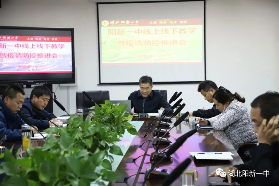 为进一步强化校园疫情防控工作,进一步做好服务高三复习备考和高一高二线上教学工作,11月28日下午3时,阳新一中在至善楼三楼会议室召开了“线上线下”教学暨疫情防控推进会。会议由明校长主持,校委会成员和部分住校中层干部参加了线下会议,其他中层干部在家中参加了线上会议。