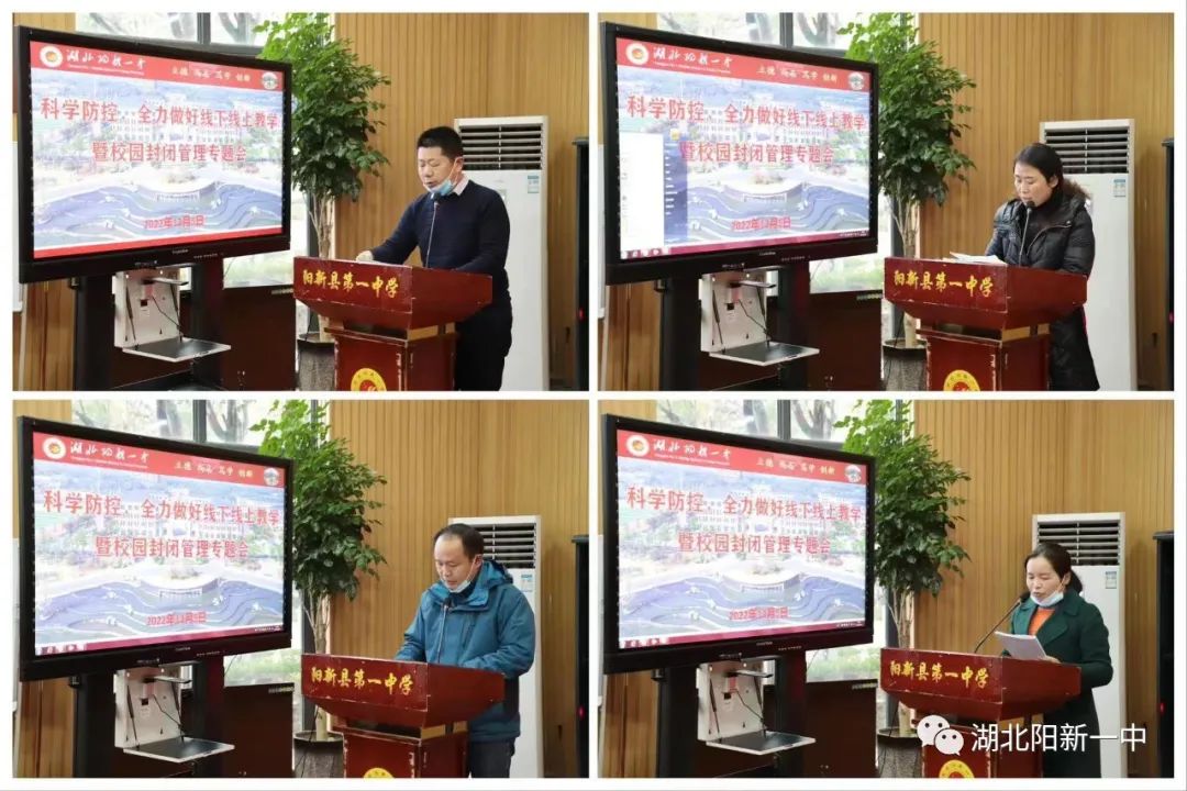 针对当前疫情新形势,为落实落细校园疫情防控各项工作措施,确保广大师生身体健康和生命安全,12月5日下午,阳新一中在明德楼报告厅召开了科学防控、全力做好线下线上教学暨校园封闭管理专题会。会议由副校长徐美姝主持,中层以上干部参加会议,校党委书记、校长明道树作主题讲话。