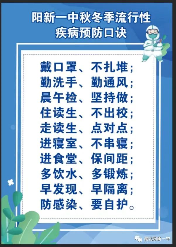 随着国务院“新十条”及湖北省优化措施“十二条”的发布,社会人员流动会急剧增加,加上冬季本来就是各类传染病的高发期,孩子们的安全成长环境显的尤为重要,请您和家人务必克服麻痹大意思想和侥幸心理,更加注重疫情防控工作。防控措施的优化调整不是放松防控,更不是放开、“躺平”,而是进一步提升防控的科学性、精准性,最大程度保护人民群众生命安全和身体健康,最大限度减少对经济社会发展的影响。家长们要坚定信心,积极配合社区(村组)坚决落实各项防控措施。