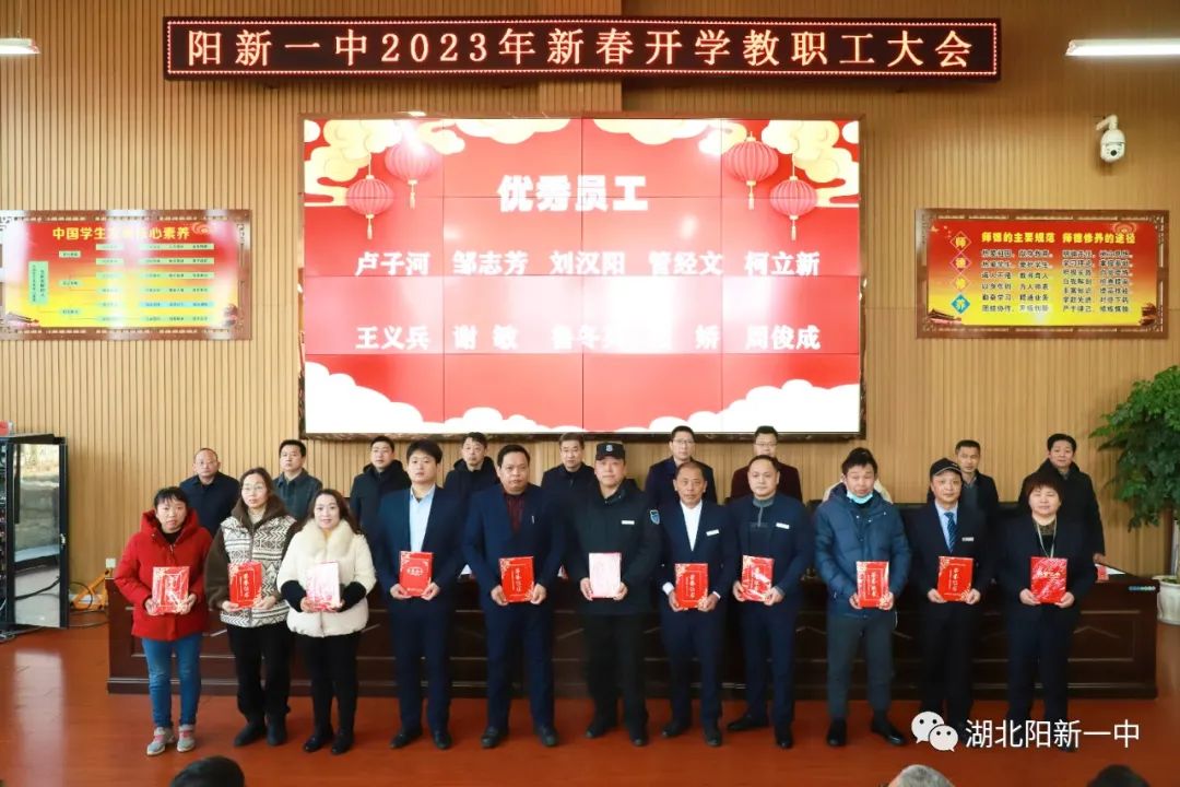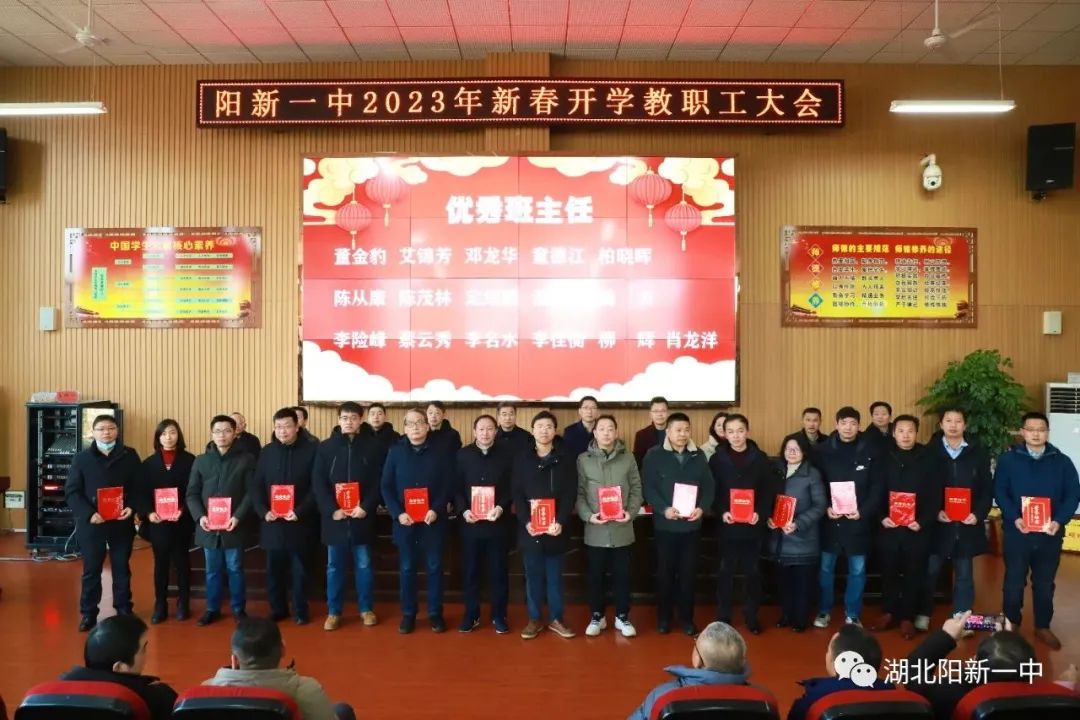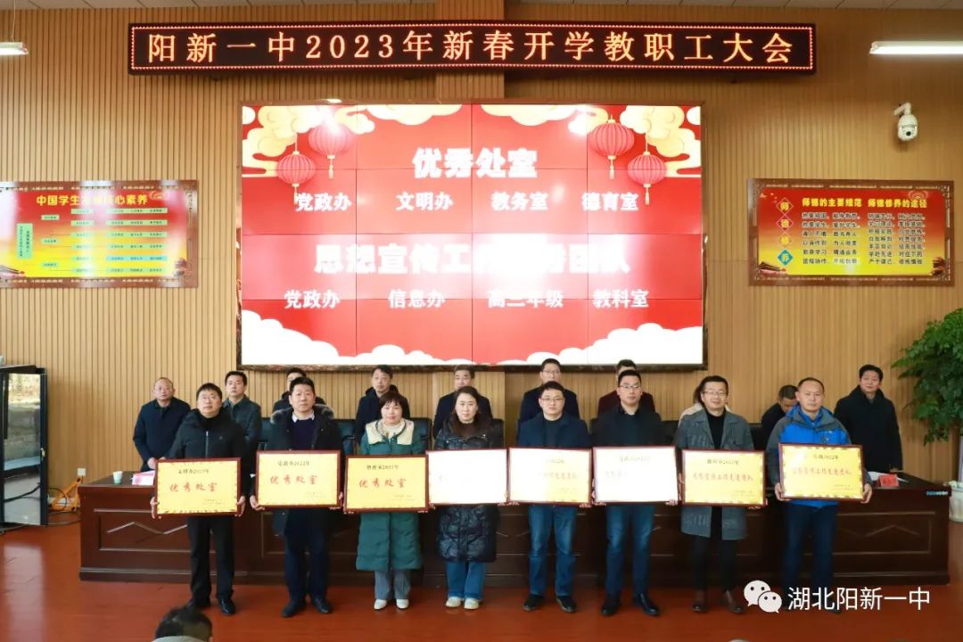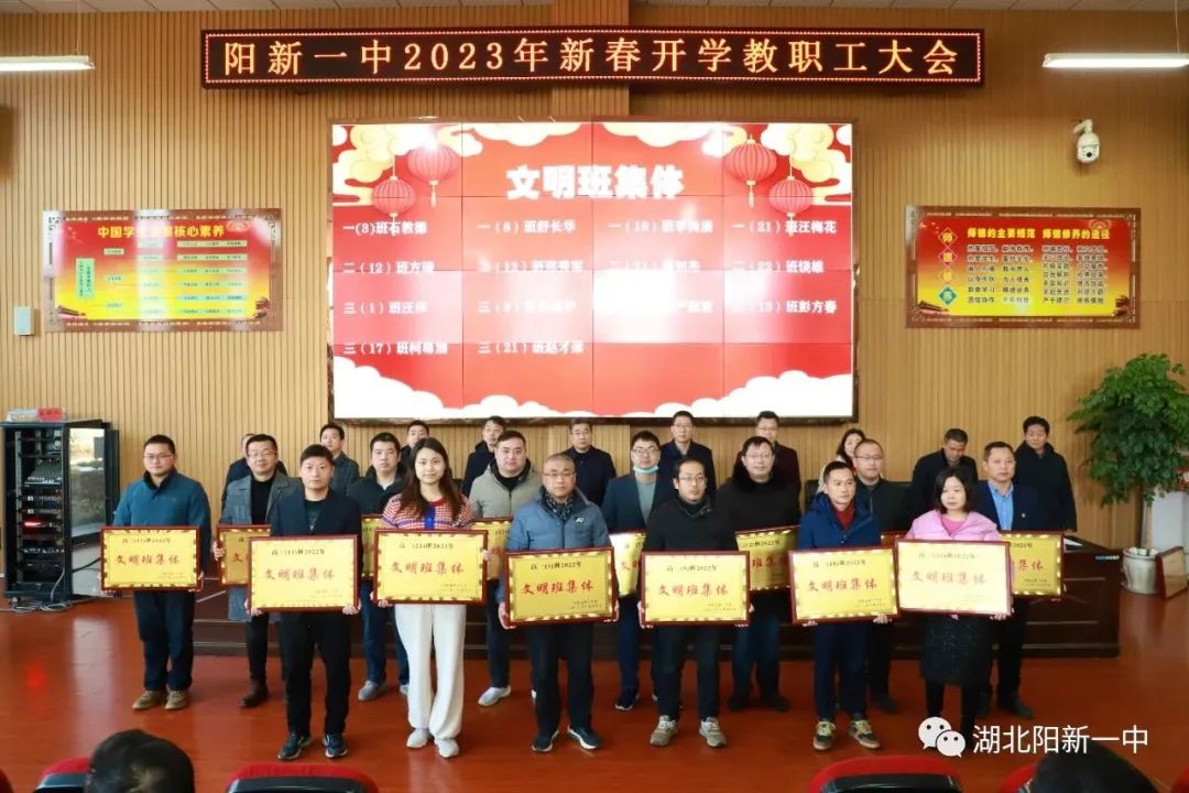 表扬先进典型,凝聚榜样力量。为表扬过去一年在教育教学工作中表现突出的优秀团队和先进个人,激励全校教职员工更加团结拼搏,奋发有为。会上,校党委副书记潘龙星宣读了《阳新一中关于表扬2022年优秀团队及先进个人的决定》。党政办等优秀处室、高一(3)等文明班集体、陈洪星等先进个人受到表扬。