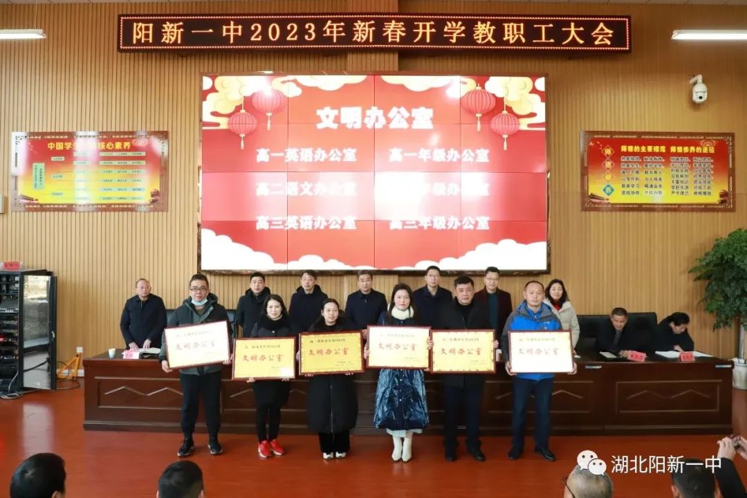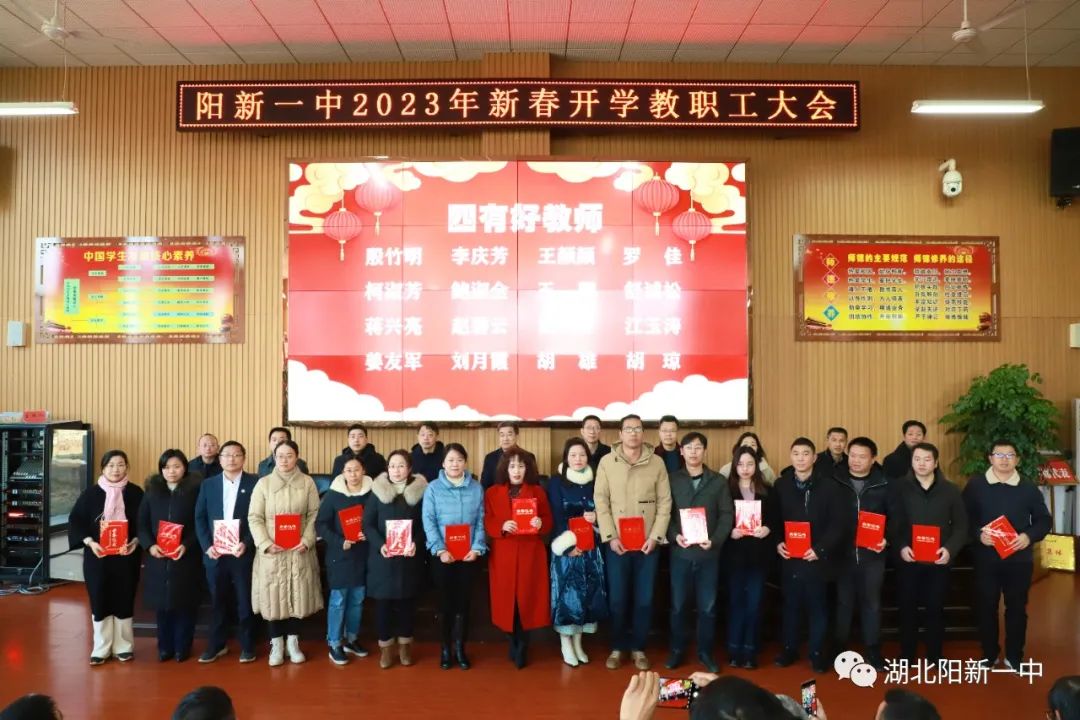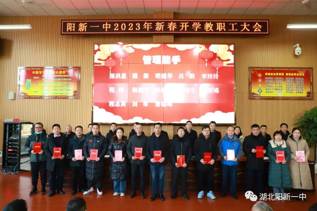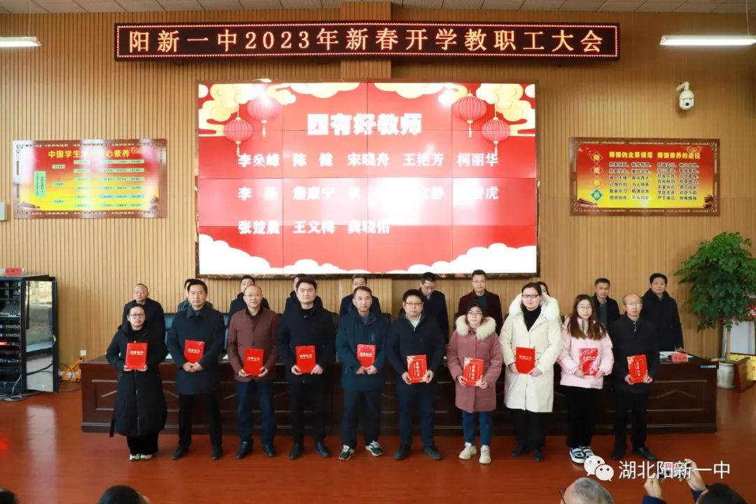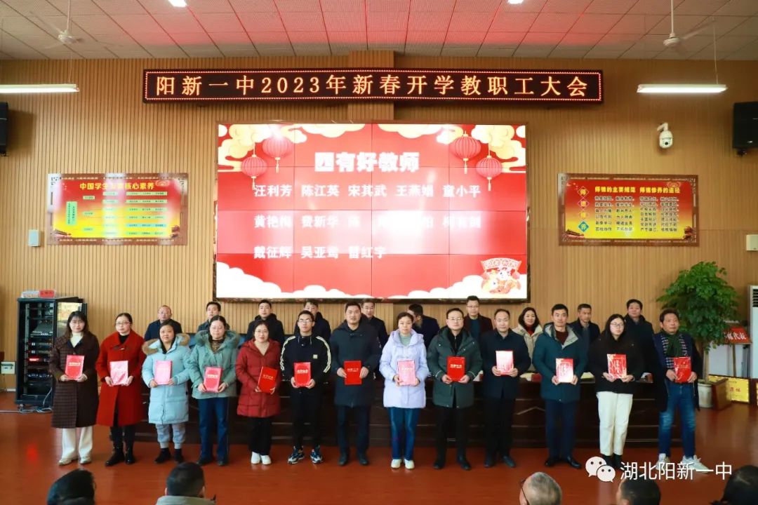 表扬先进典型,凝聚榜样力量。为表扬过去一年在教育教学工作中表现突出的优秀团队和先进个人,激励全校教职员工更加团结拼搏,奋发有为。会上,校党委副书记潘龙星宣读了《阳新一中关于表扬2022年优秀团队及先进个人的决定》。党政办等优秀处室、高一(3)等文明班集体、陈洪星等先进个人受到表扬。