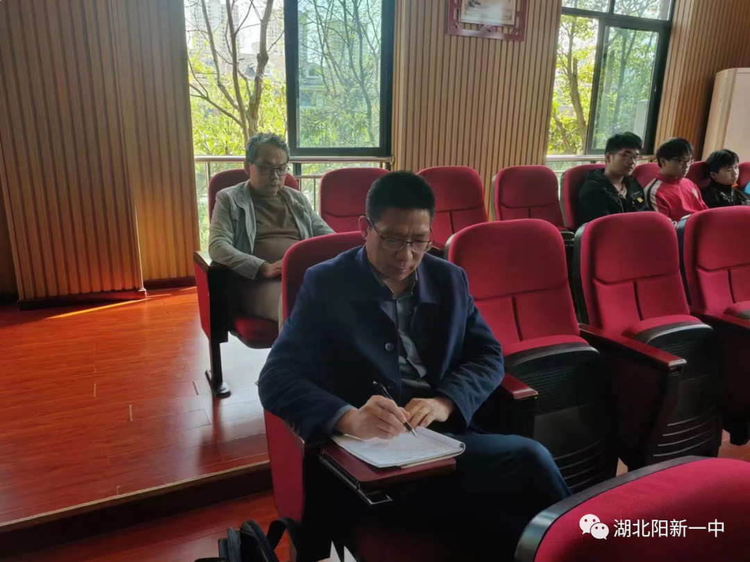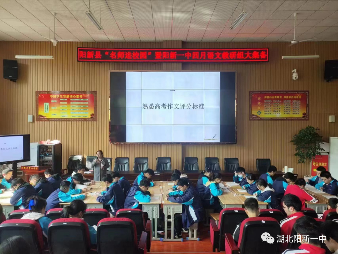 为了进一步深入推进我校教学改革,助力2023届高三复习备考工作,并科学指导二轮复习专题突破与能力提升,促进高一高二年级常规教学工作,4月7日下午3:00,县教育局组织的阳新县“名师进校园”暨阳新一中四月语文组大集备活动在阳新一中明德楼学术报告厅举行。湖北省特级教师、湖北省高考阅卷优秀评卷员、华中师大基础教育合作办学优秀督导专家、武昌区学科中心备课组成员、华中师大一附中语文高级教师吴洪涛老师带来了一堂精彩的复习指导课。