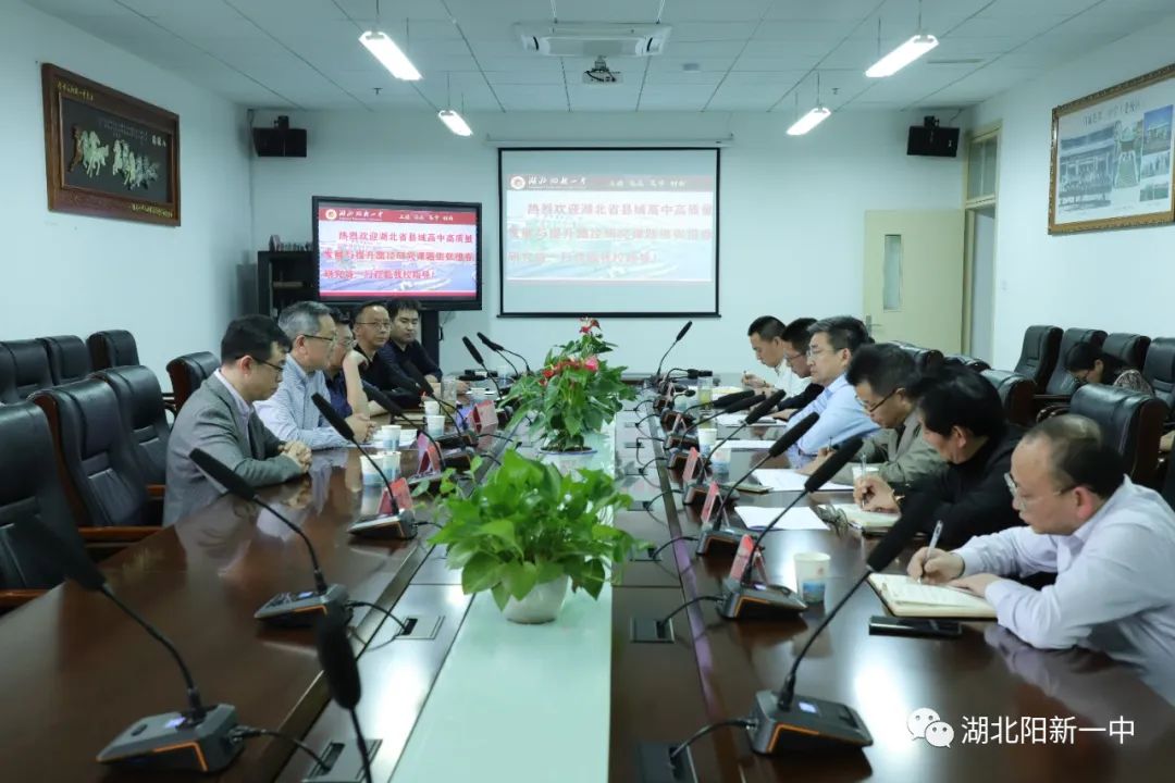 人间最美四月天,不负春光与时行。4月11日下午,湖北省教育科学规划重点课题——“湖北省县域普通高中高质量发展与提升路径研究”课题主持人张祖春(湖北省教育科学研究院研究员,湖北省教育学会副会长兼秘书长,青于蓝教育研究院院长)、毛元德(青于蓝教育研究院研究员、黄冈市教育科学研究院原高中室主任、高中语文教研员、特级教师),胡瑞明(青于蓝教育研究院研究员、《核按钮》英语学科主编),许晓林(青于蓝教育研究院研究员、湖北省教育科学研究院原高中物理教研员),祈振国(青出于蓝文化传播有限公司总经理)等领导一行莅临我校调研指导工作并开展座谈。我校党委书记、特级教师明道树,校长方长风及学校班子成员陪同参与调研座谈。