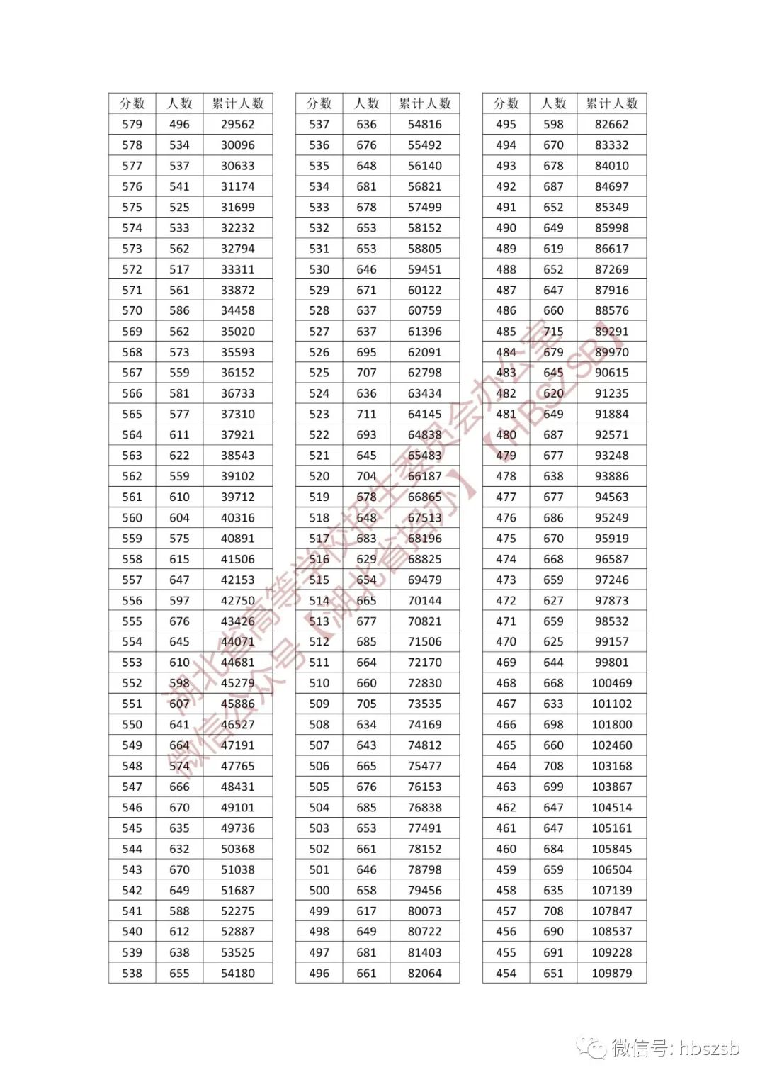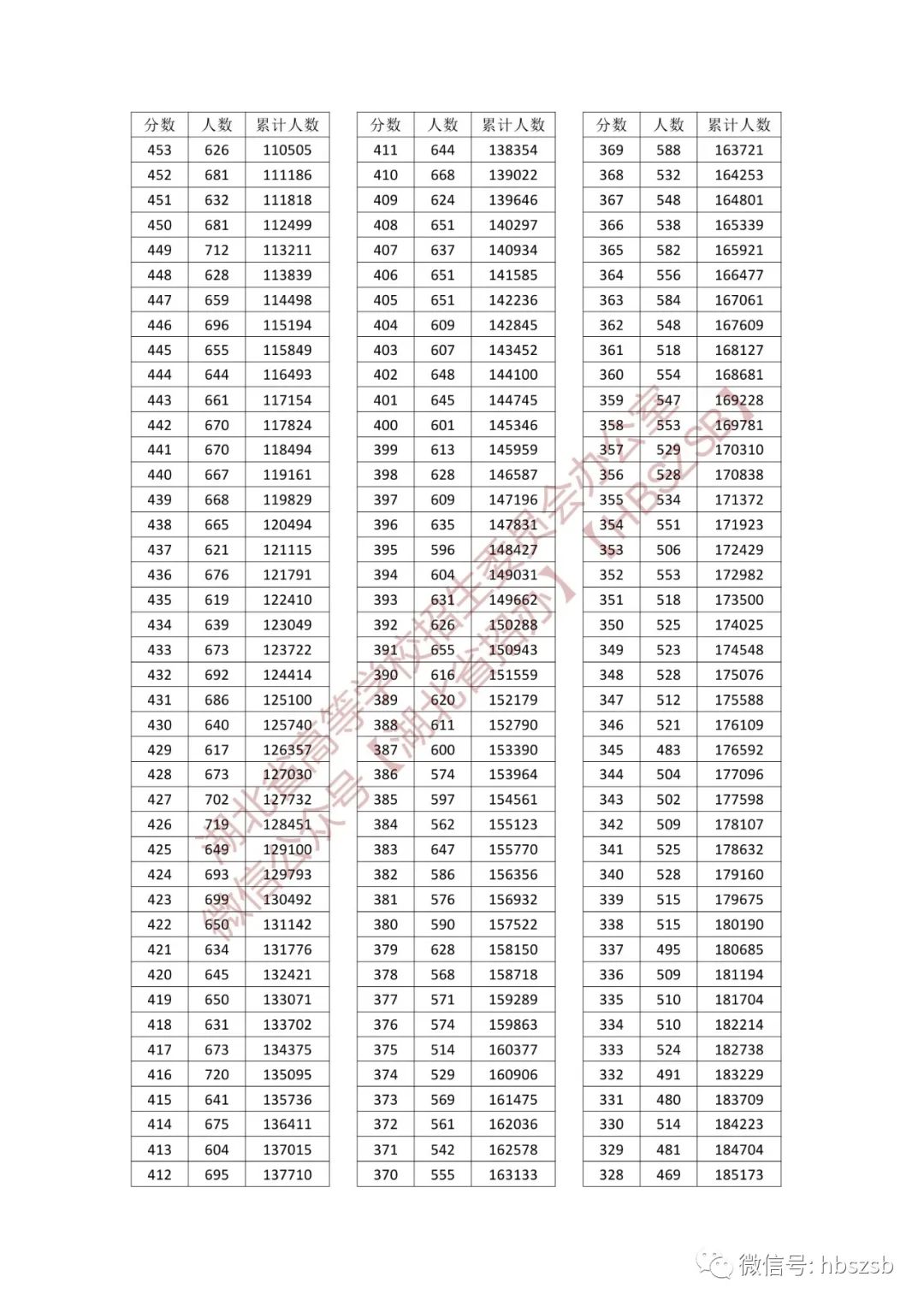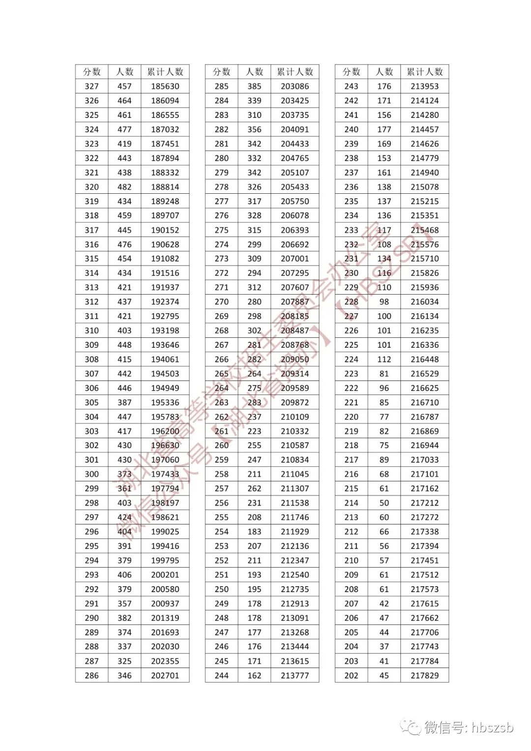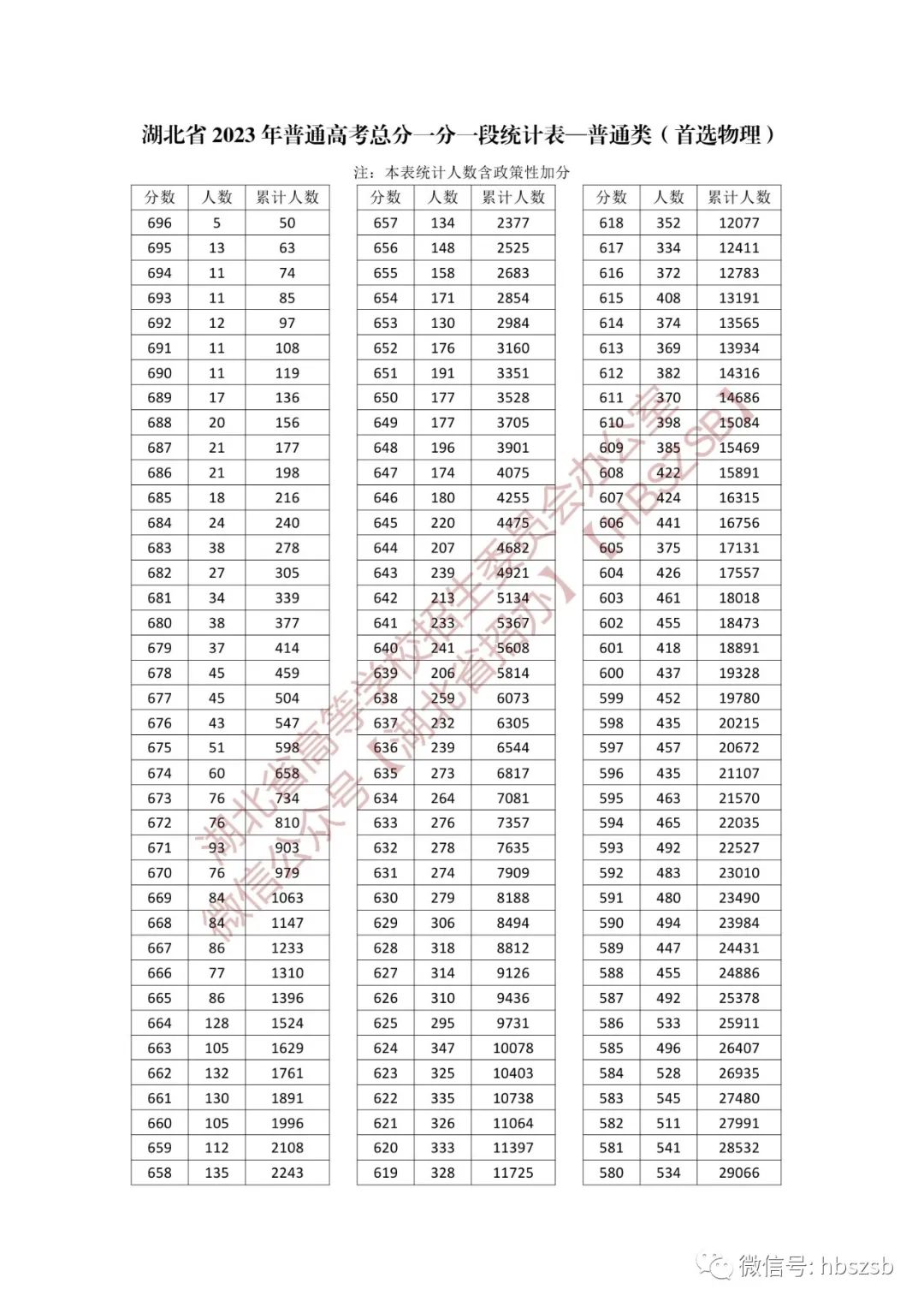 湖北省2023年普通高考总分一分一段统计表(首选物理)