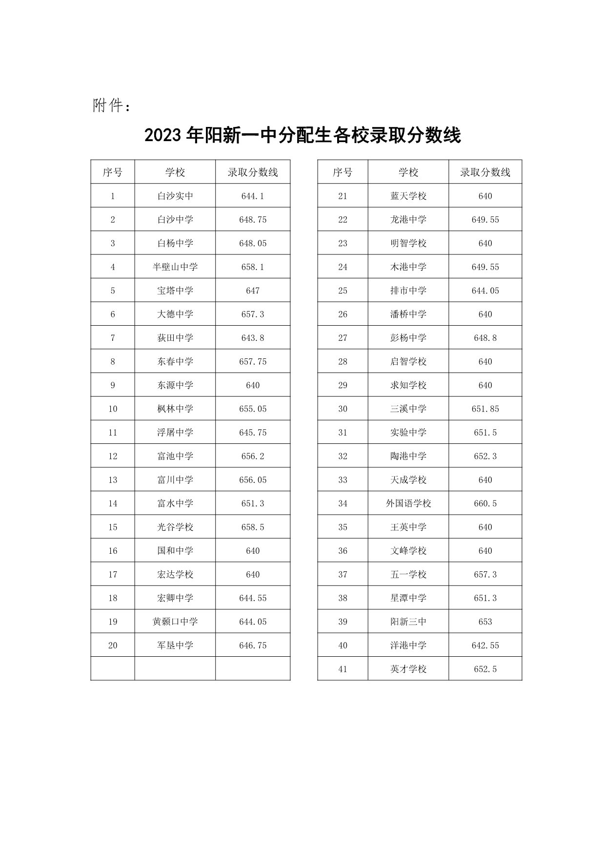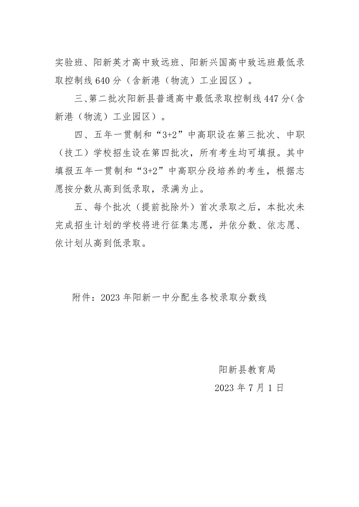 县教育局关于公布2023年高中阶段学校招生录取控制分数线的通知
