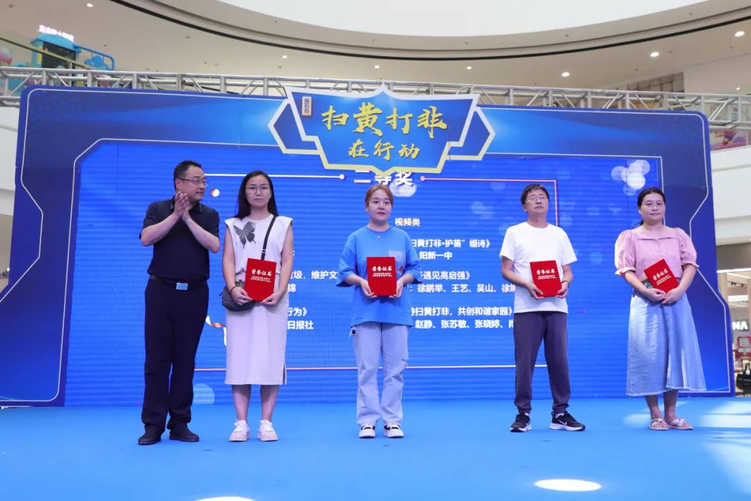 坚持“扫黄打非”,构建和谐社会。2023年8月19日下午2:00,阳新县委宣传部副部长陈新海,阳新一中校长方长风,县委宣传部新闻出版和电影管理股负责人柯晶晶,阳新一中文明办主任明建华及相关工作人员赴黄石参加全市“扫黄打非”公益宣传有奖征集活动获奖作品颁奖会暨“护苗2023·绿书签行动”。阳新一中学生朗诵作品《“扫黄打非·护苗”》荣获黄石市公益宣传作品二等奖。