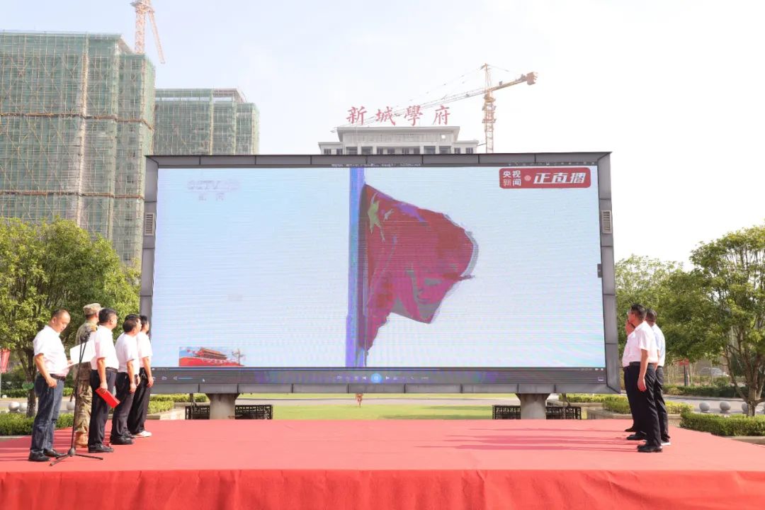八点二十八分,全场1300多名师生向国旗行注目礼,奏唱国歌,鲜艳的五星红旗冉冉升起,阳新一中2023级高一新生国防教育活动正式拉开了序幕。