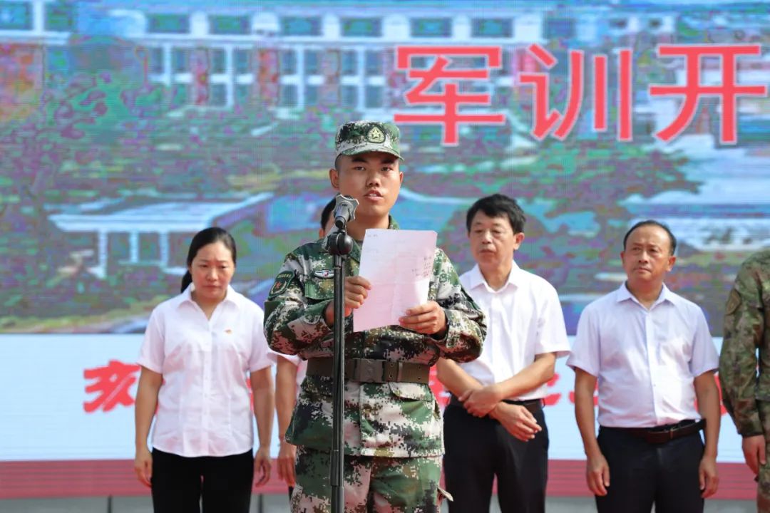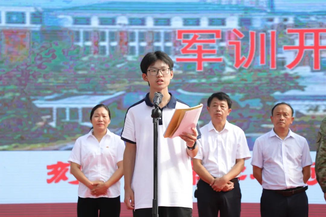 高一新生代表周乐晨分享了他进一中以来的所见所感,畅言军训憧憬,决心在此次国防教育中,互相团结,互相协作,不怕苦,不怕累敢于拼搏的一中人。