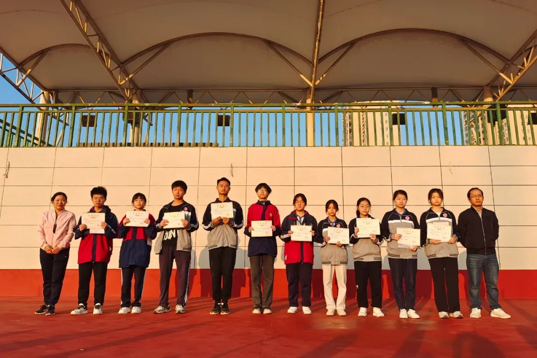 百舸争流千帆竞,你追我赶奋者先。为树立榜样,表彰优秀,激励学子挑战自我,突破极限,11月1日早上7:00,高二年级在体育运动场举行了主题为“挑战自我,突破极限”的国旗下讲话活动。本次晨训活动由高二年级柏晓晖主任主持,高二(20)班承办,全体高二班主任及学生参加。